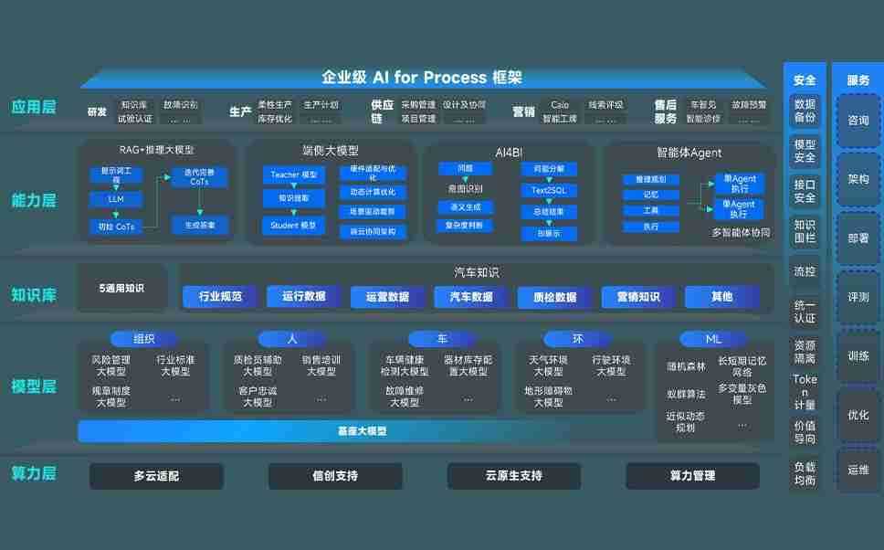 端到端的一站式AI工作空间深度融合了从企业战略规划到日常经营的全流程业务板块,,定向解决车企内部领域多、、、、部门多、、、链条长、、场景碎片化等难题,,支持车企快速构建以AI为核心的生产力写作体系,,,实现任务执行与AI能力的无缝集成与交互